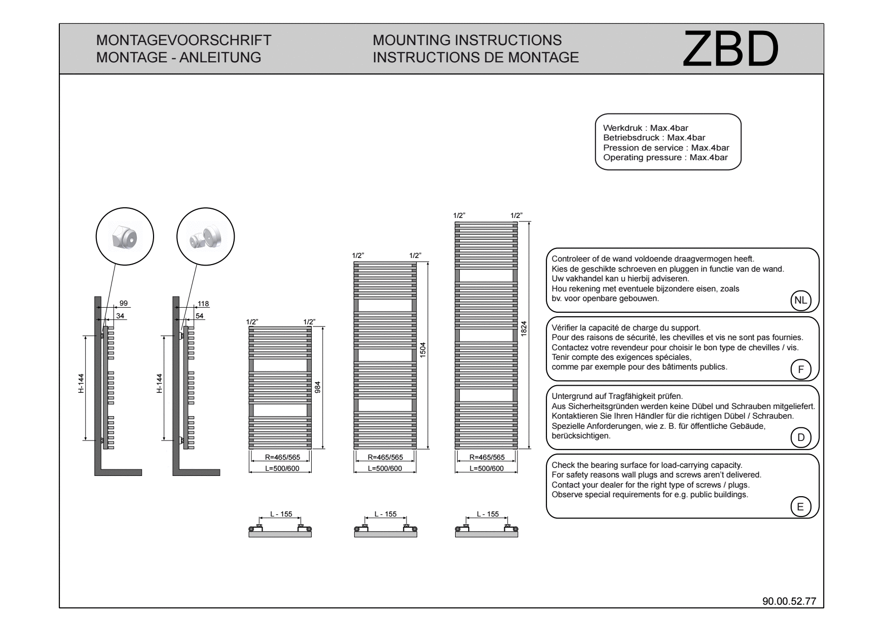 Vasco Zana zbd radiator 500x1504 mm n32 as 1188 976w antraciet m301