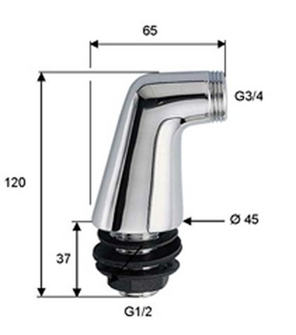 Praya staande badrandkoppelingen 1/2x3/4 set van 2 chroom