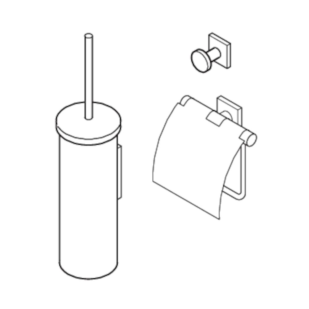 - Bevat toiletborstel met houder, toiletrolhouder met klep en handdoekhaak
