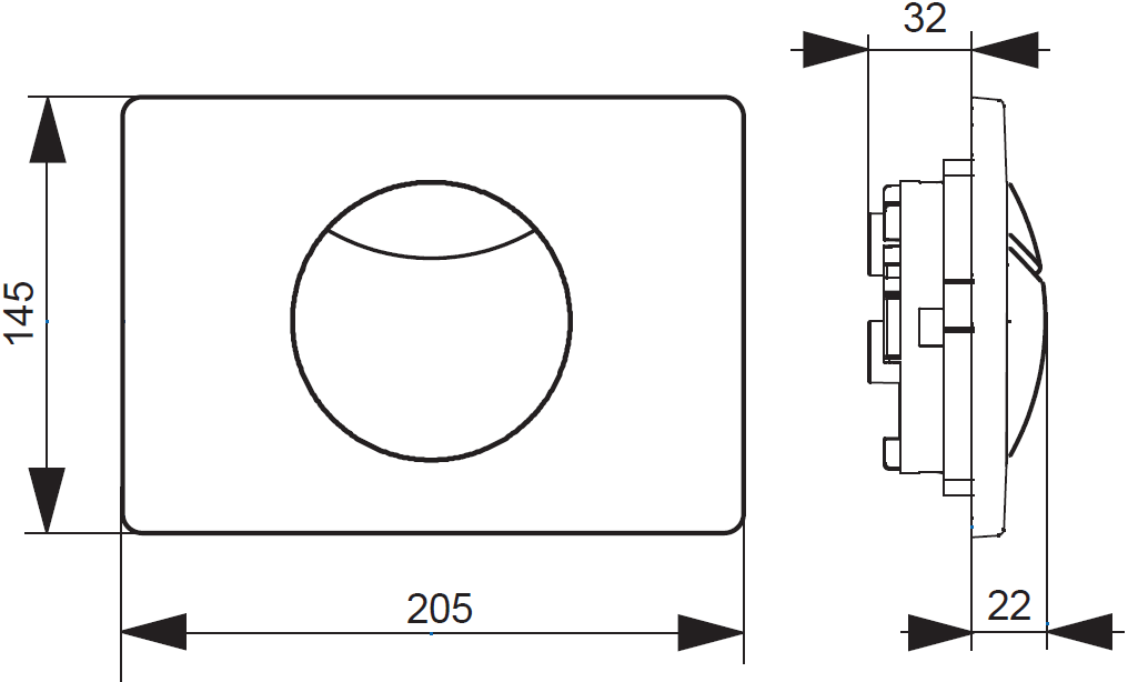 - Rechthoek bedieningspaneel met ronde knoppen