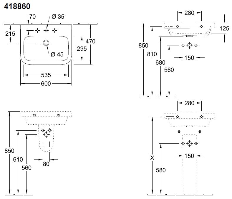 Villeroy & Boch Architectura wastafel 60x47cm met kraangat zonder overloop wit