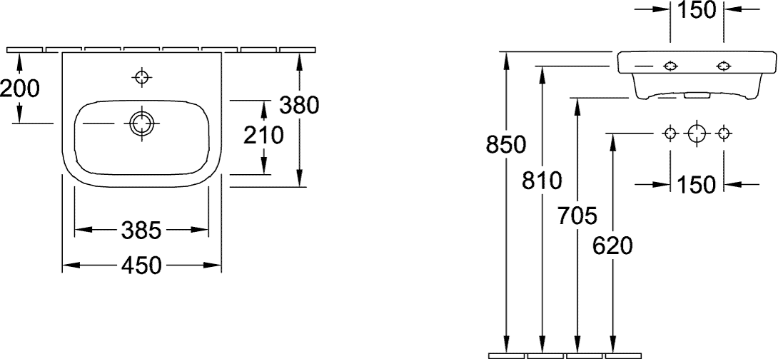 Villeroy & Boch Architectura fontein 45x38cm met kraangat met overloop wit