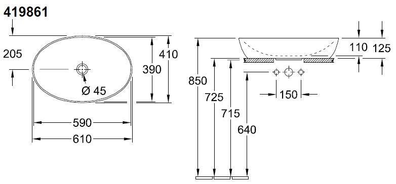 Villeroy & Boch Artis opzetwastafel ovaal 61x41cm zonder overloop wit