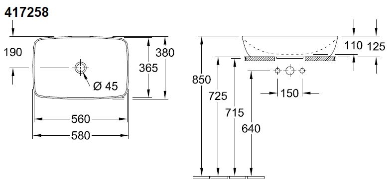 Villeroy & Boch Artis opzetwastafel rechthoekig 58x38cm zonder overloop ceramic+ wit