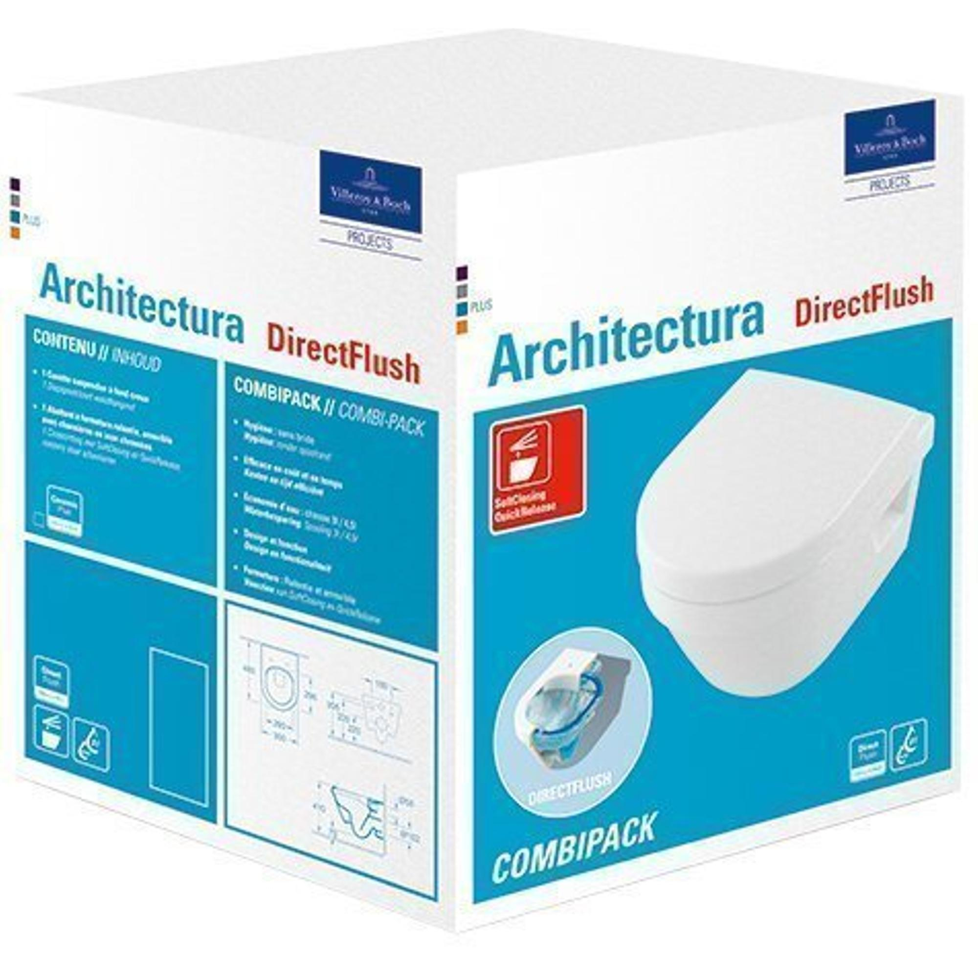 Villeroy & Boch Architectura combi pack met wandcloset diepspoel DirectFlush 35x48cm met zitting met softclose en quick release wit