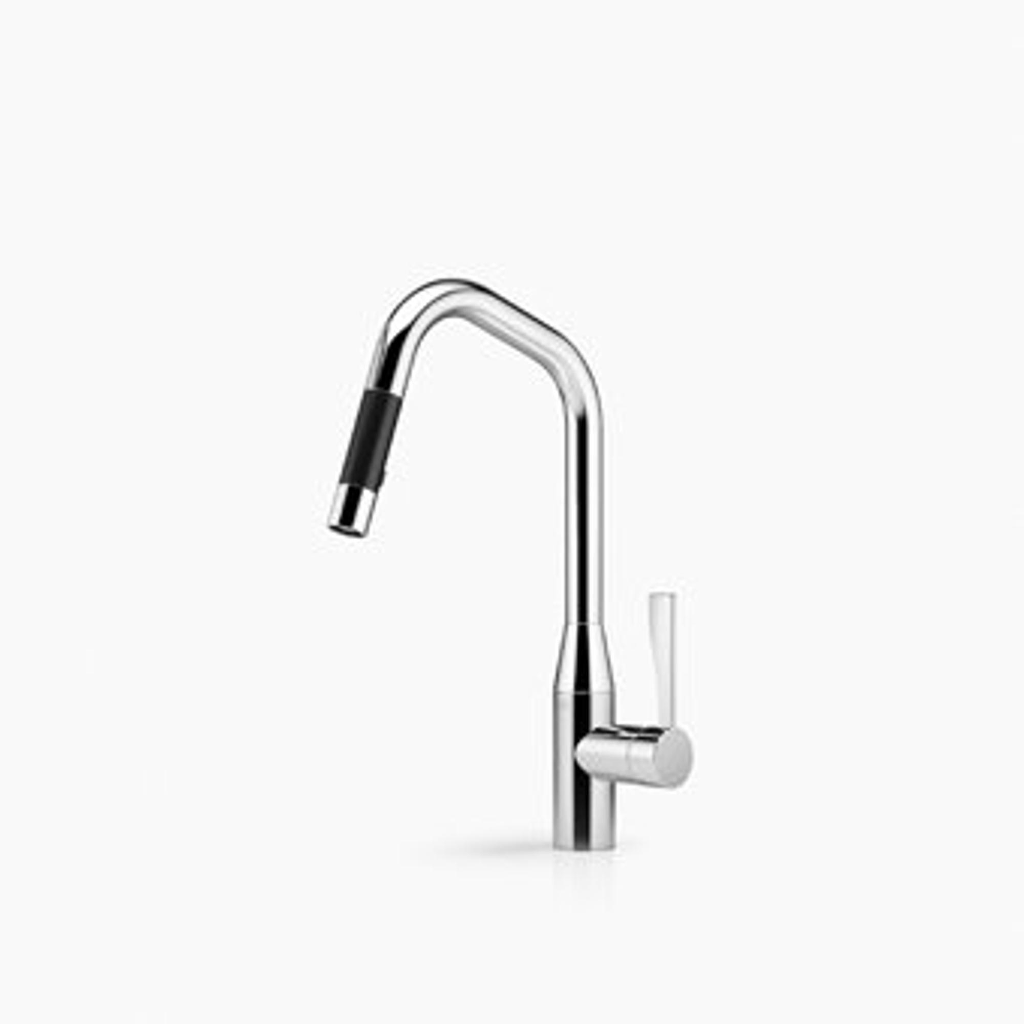 Dornbracht Sync 1 gats keukenkraan met uittrekbare hoekige uitloop met handdouche 360° draaibaar sprong 24cm platina mat