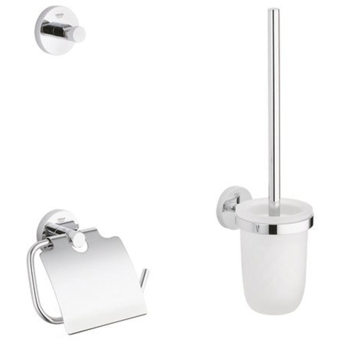 GROHE Essentials Toilet accessoireset 3-delig met toiletborstelhouder, handdoekhaak en toiletrolhouder met klep chroom