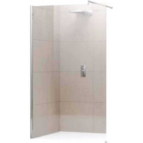 Novellini Giada inloopdouche H 75x195cm met muursteun 100cm mat chroom profiel en helder glas