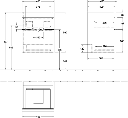 Villeroy & Boch Venticello fonteinonderbouwkast met 2 laden voor fontein 46.6x42.6x59cm glans wit