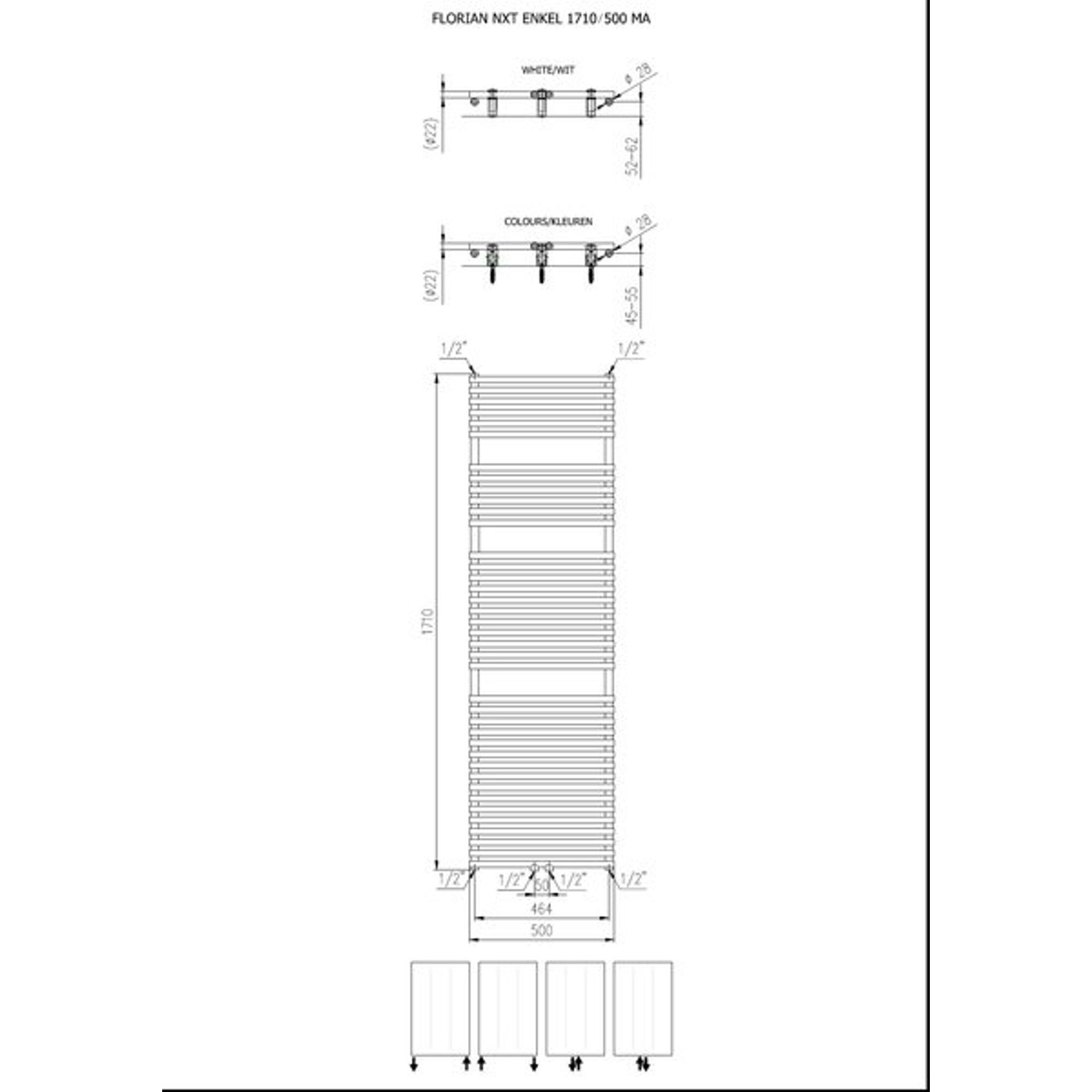 Klassieke alleskunner. De Florian NXT is een populaire allemansvriend. Verkrijgbaar in een enkele en dubbele variant, verschillende afmetingen en 12 kleuren. En met bijpassende handdoekbeugels, -ringen of -haken. Er is ook een verwarmingselement waarmee je de NXT kunt gebruiken als elektrische radiator.
