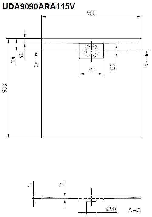 Villeroy & Boch Architectura douchebak 90x90x1.5cm metalrim grijs