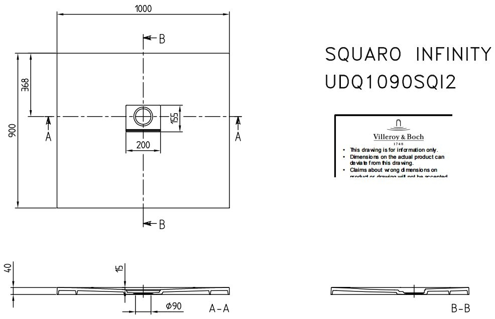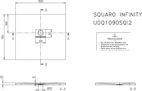 Villeroy & Boch Squaro infinity douchebak 100x90x4cm antraciet