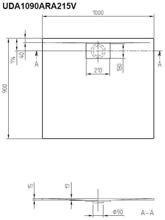 Villeroy & Boch Architectura douchebak 100x90x1.5cm metalrim antraciet
