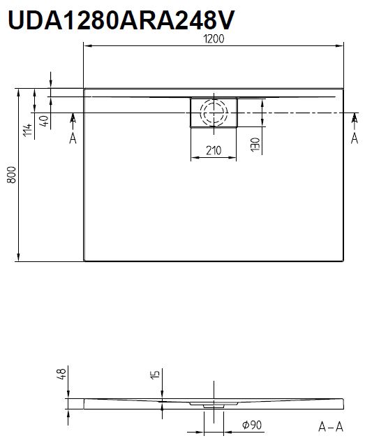 Villeroy & Boch Architectura douchebak 120x80x4.8cm metalrim antraciet