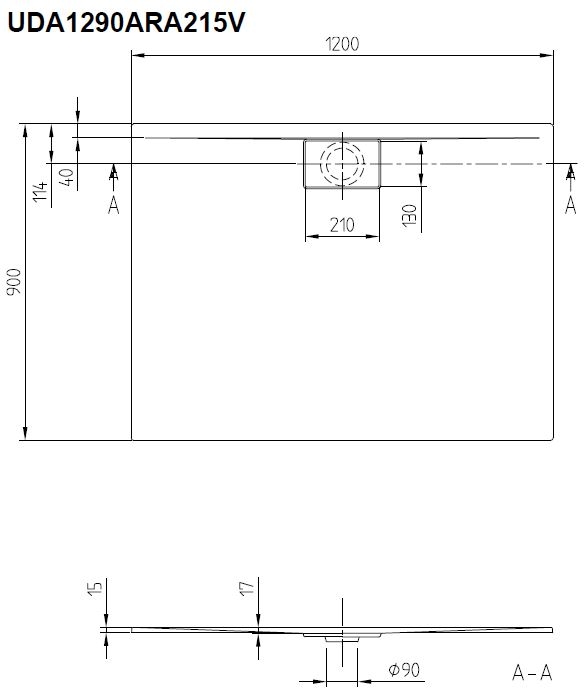 Villeroy & Boch Architectura douchebak 120x90x4.8cm metalrim antraciet
