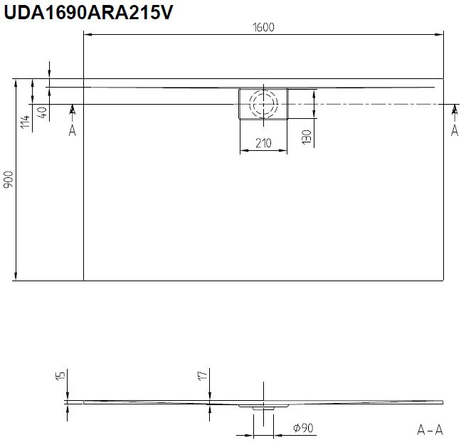 Villeroy & Boch Architectura douchebak 160x90x1.5cm metalrim antraciet