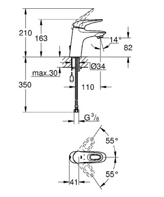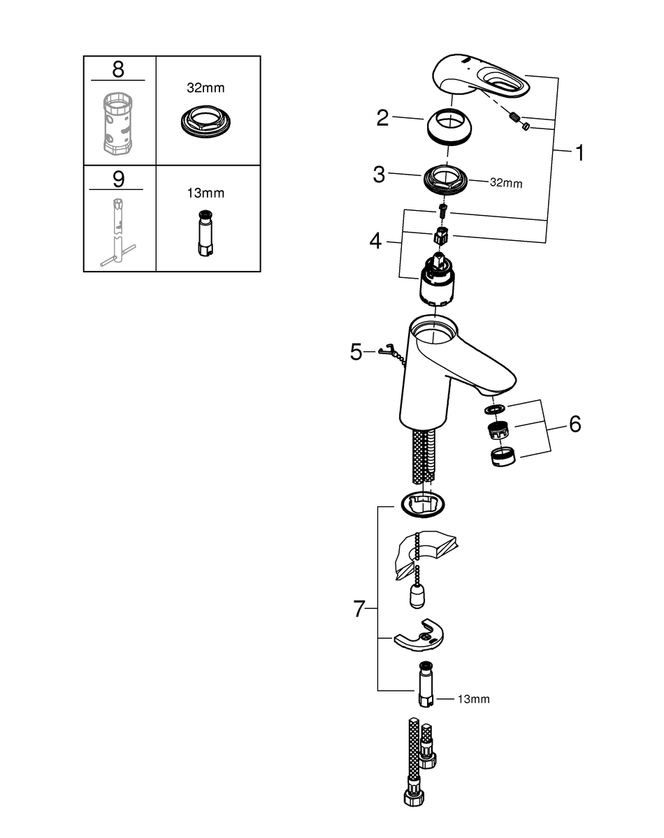 GROHE Eurostyle New waterbesparendes wastafelkraan M size met ketting chroom