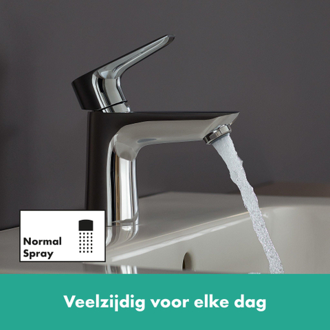De ergonomische ééngreeps mengkraan loopt soepel en het hoogwaardige keramische mengsysteem van hansgrohe is bijzonder duurzaam. De mengkraan verwent met duidelijk vollere, lichtere en zachtere druppels. Het geheim: uitstromend water wordt automatisch met lucht verrijkt (AirPower). Water besparen? Ook hier helpt de intelligente hansgrohe technologie: met behulp van een automatische begrenzer stroomt maximaal 5 l/min - onafhankelijk van de waterdruk. Dit bespaart geld en beschermt de natuur (EcoSmart).
