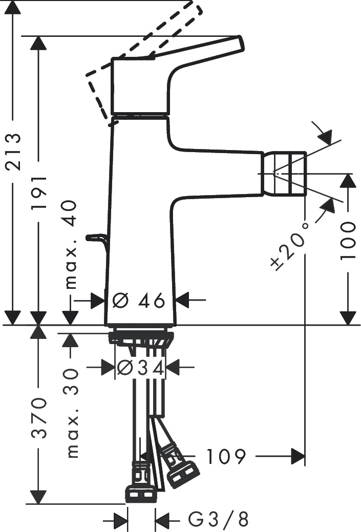 Hansgrohe Talis S 1 gats bidetkraan met waste chroom