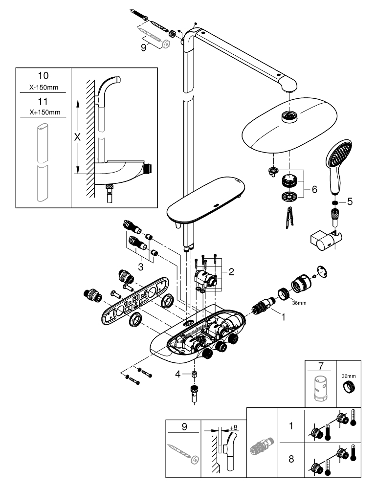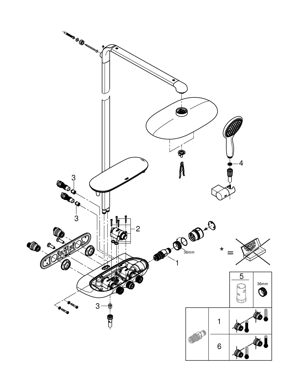 * Te bepalen bij installatie; fabrieksinstelling: GROHE PureRain