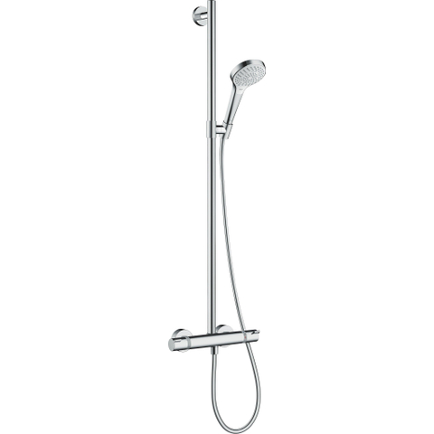 Het douchesysteem Croma Select S Multi SemiPipe is het instapmodel in de Showerpipe-wereld van hansgrohe. Met hoogwaardig douchethermostaat, moderne handdouche, doucheslang en de solide douchestang (0,90 m), die ook als handgreep dient, ontstaat een kleine wellness-oase in de badkamer. Het tijdloos ronde design van de douchekop harmonieert met uiteenlopende badkamersferen. Het wit van de straalplaat vormt een fascinerend contrast met het hoogglans chroom.