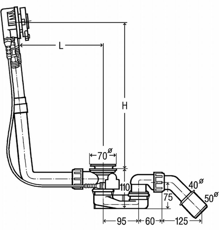 Viega Multiplex Multiplex Trio badafvoer en vul overloopcombinatie met waste 40/50x725mm basismodel