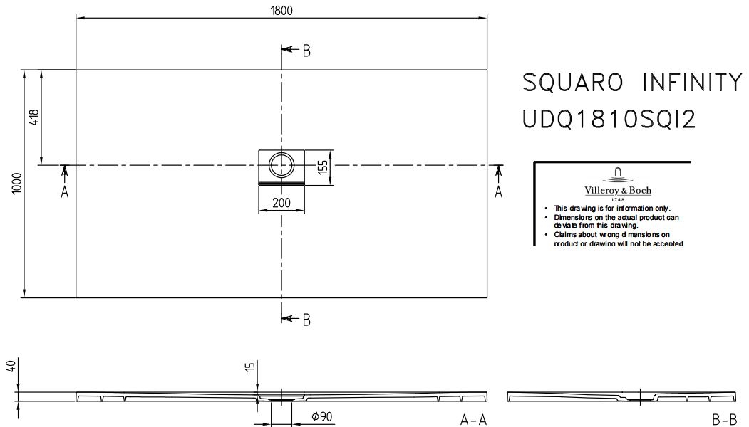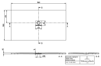 Villeroy & Boch Squaro infinity douchebak 180x100x4cm antraciet