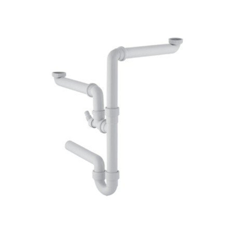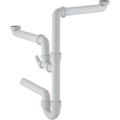 Geberit afvoergarnituur voor spoeltafel met 2 bakken met afvoerbocht plaatsbesparend PP 5/4xD40 wit