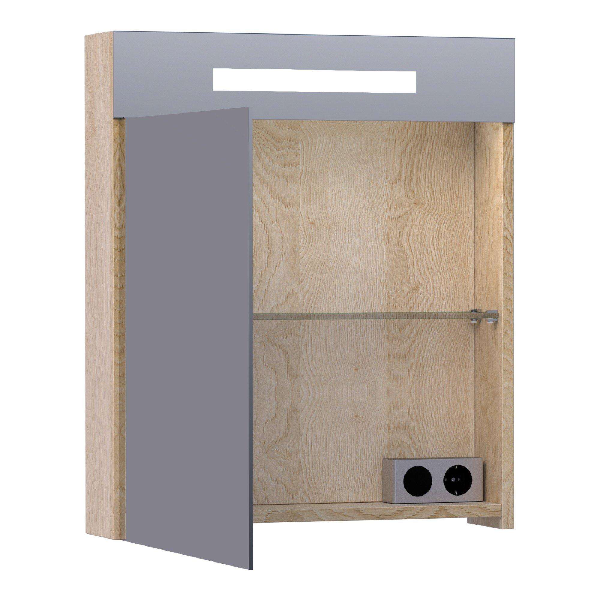 BRAUER Double Face Spiegelkast - 60x70x15cm - verlichting - geintegreerd - 1 linksdraaiende spiegeldeur - MFC - legno calore