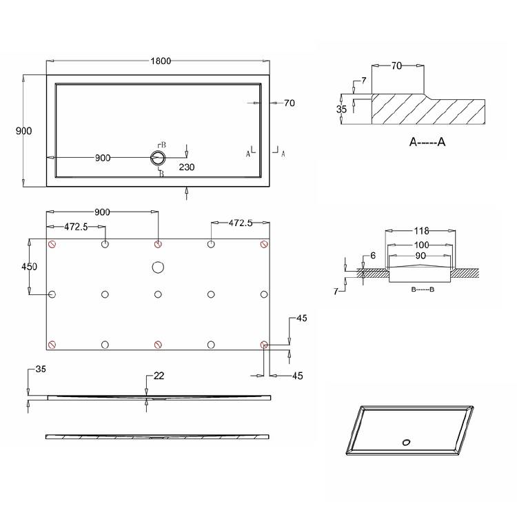 Let op! Het formaat van deze douchebak kan ca. 4mm afwijken. Meet voor montage de douchebak na.
