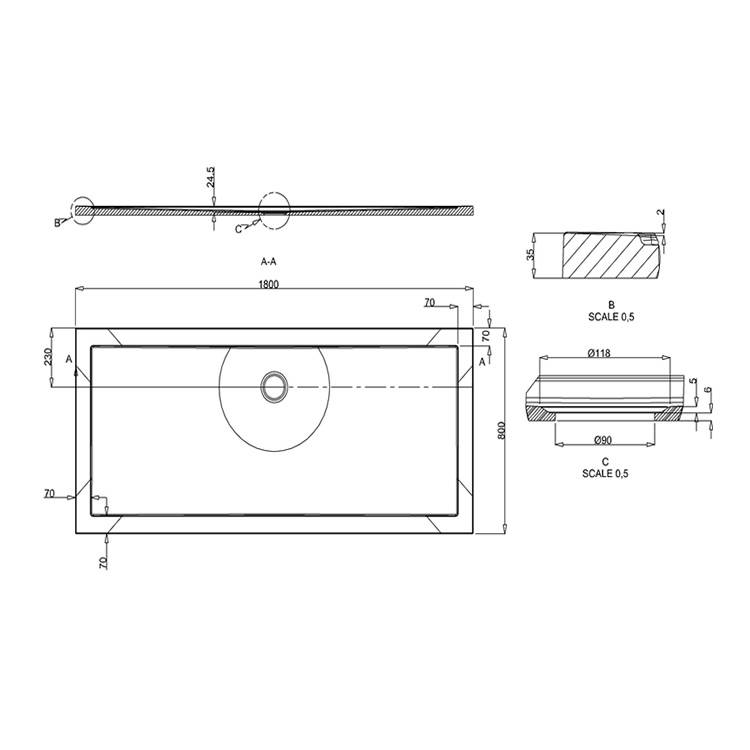 Let op! Het formaat van deze douchebak kan ca. 4mm afwijken. Meet voor montage de douchebak na.