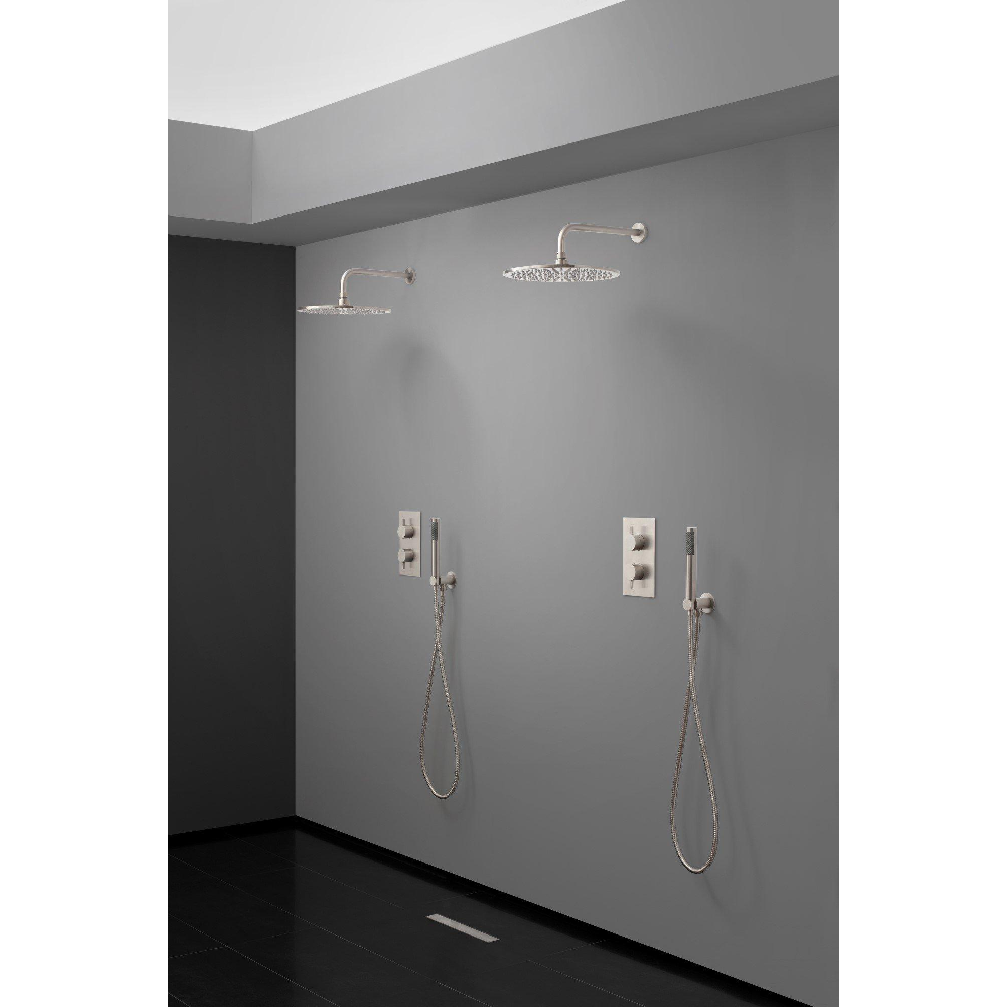 Deze douchekraan straalt luxe uit in elk detail. Het gebruik van hoogwaardige materialen zoals geborsteld roestvrij staal zorgt niet alleen voor een duurzame constructie, maar geeft ook een gevoel van luxe en verfijning. De soepele bediening en precieze temperatuurregeling dragen bij aan een comfortabele en luxueuze douche-ervaring.