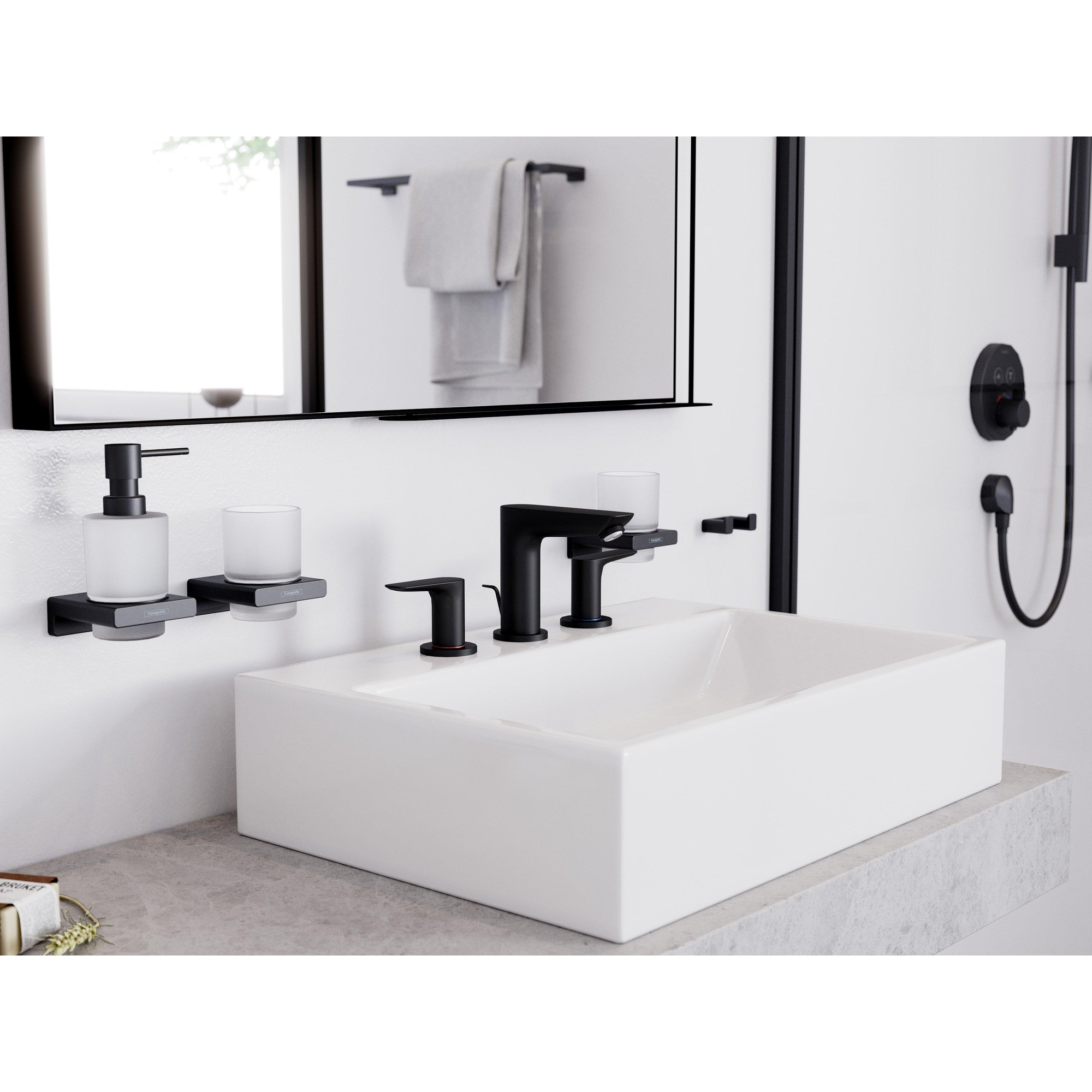 De 3-gats wastafelmengkraan Talis E met trekstang-afvoerset van hansgrohe maakt indruk met modern comfort en tijdloos elegant design. Zoals alle Talis E mengkranen glanst heldere, met precieze hoeken en mooie, zwevende oppervlakken. Dat harmoniseert met ieder baddesign. De uitloop, geflankeerd door de handige draaiventielen voor warm en koud water, maakt indruk met een hoogwaardige en gemakkelijk te reinigen chromen oppervlak.