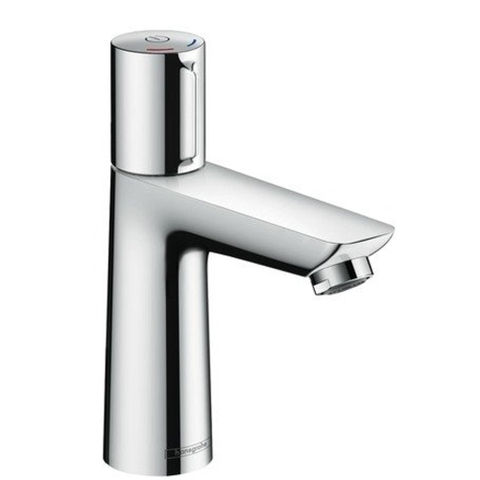De Talis Select E wastafelmengkraan maakt indruk met modern design en tijdloze elegantie. De mengkraan glanst heldere, met precieze hoeken en mooie, zwevende oppervlakken. Dankzij Select-technologie is er geen handgreep, waardoor de mengkraan er in iedere instelling harmonisch uitziet. De greep hoeft niet te worden teruggedraaid. In plaats daarvan is de vooraf ingestelde watertemperatuur direct beschikbaar