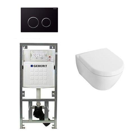Villeroy & Boch Subway 2.0 Compact met zitting toiletset met geberit inbouwreservoir en sigma20 drukplaat zwart