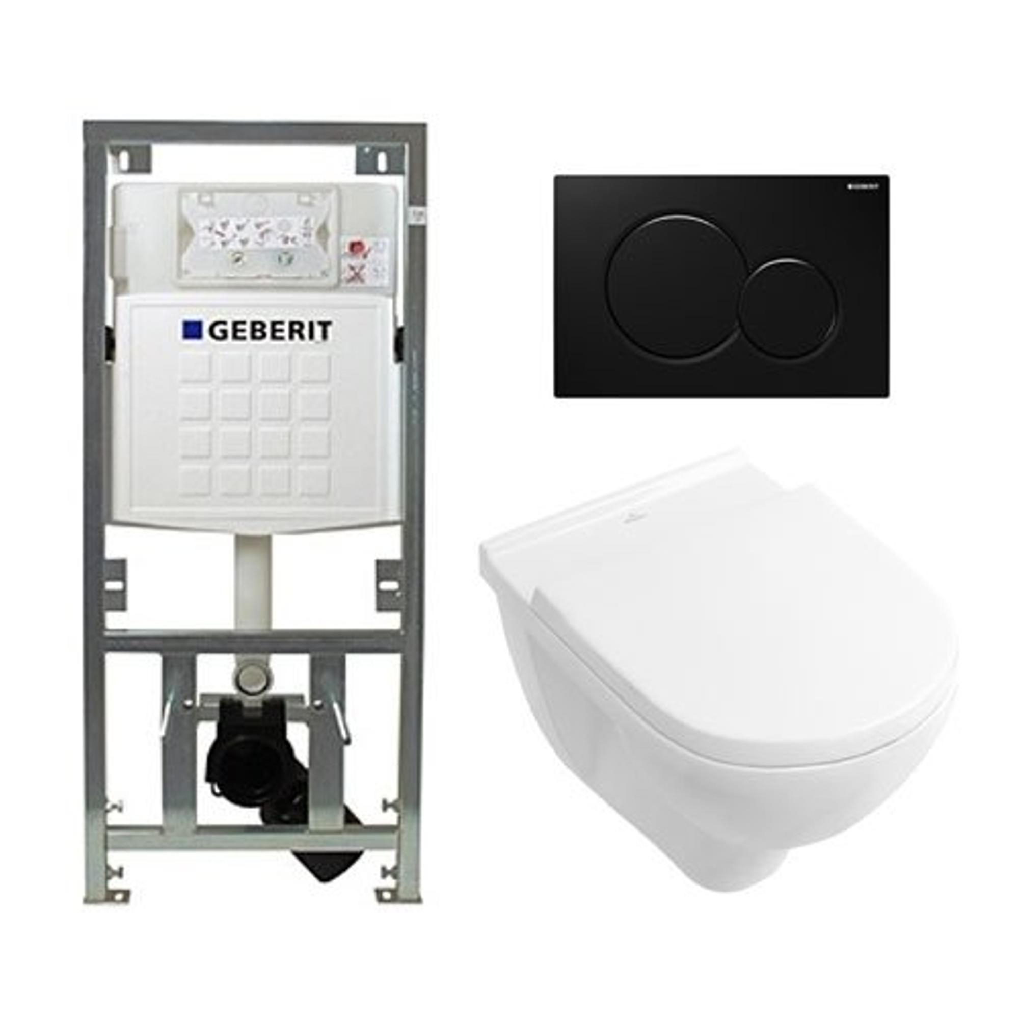 Villeroy & Boch O.novo inbouwset met diepspoel wandcloset wit softclose zitting afdekplaat zwart