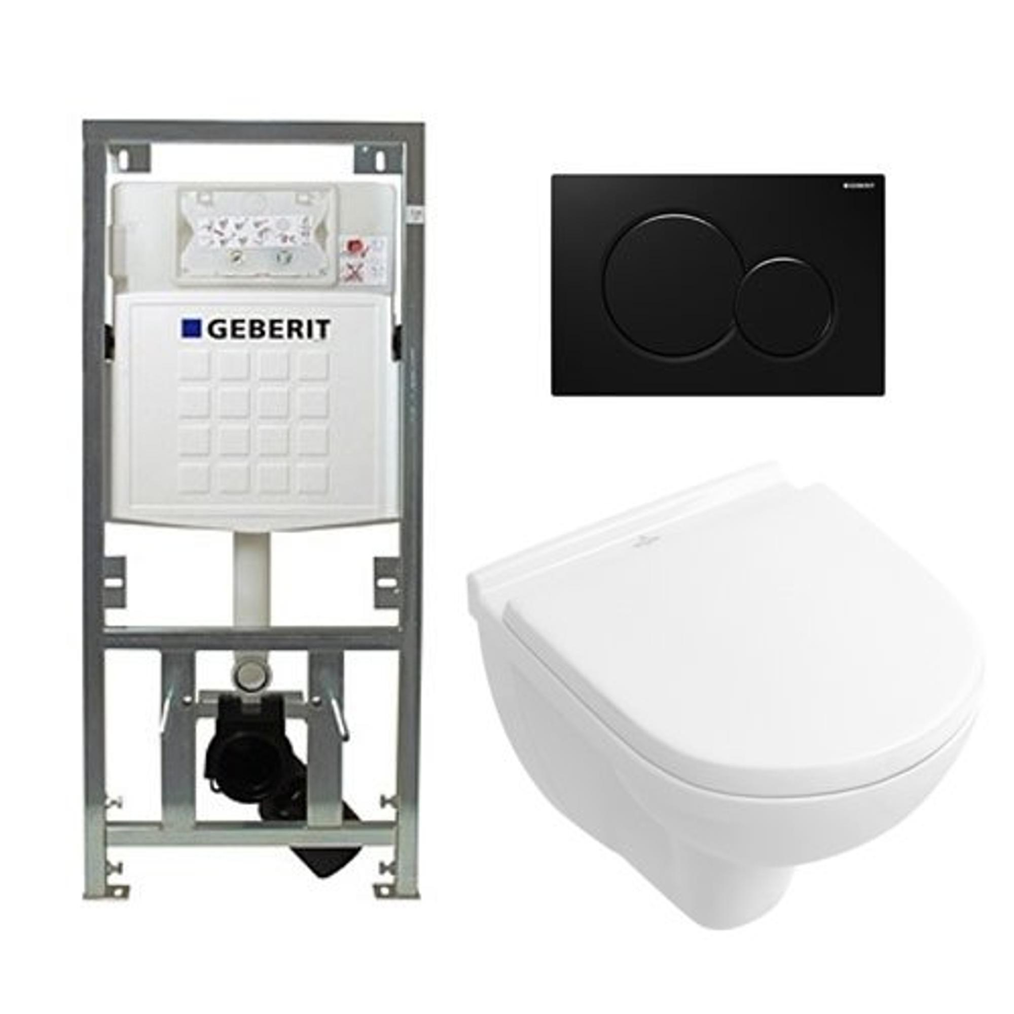 Villeroy & Boch O.novo Compact inbouwset met diepspoel wandcloset wit softclose zitting afdekplaat zwart