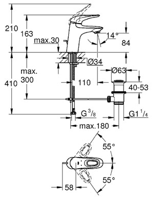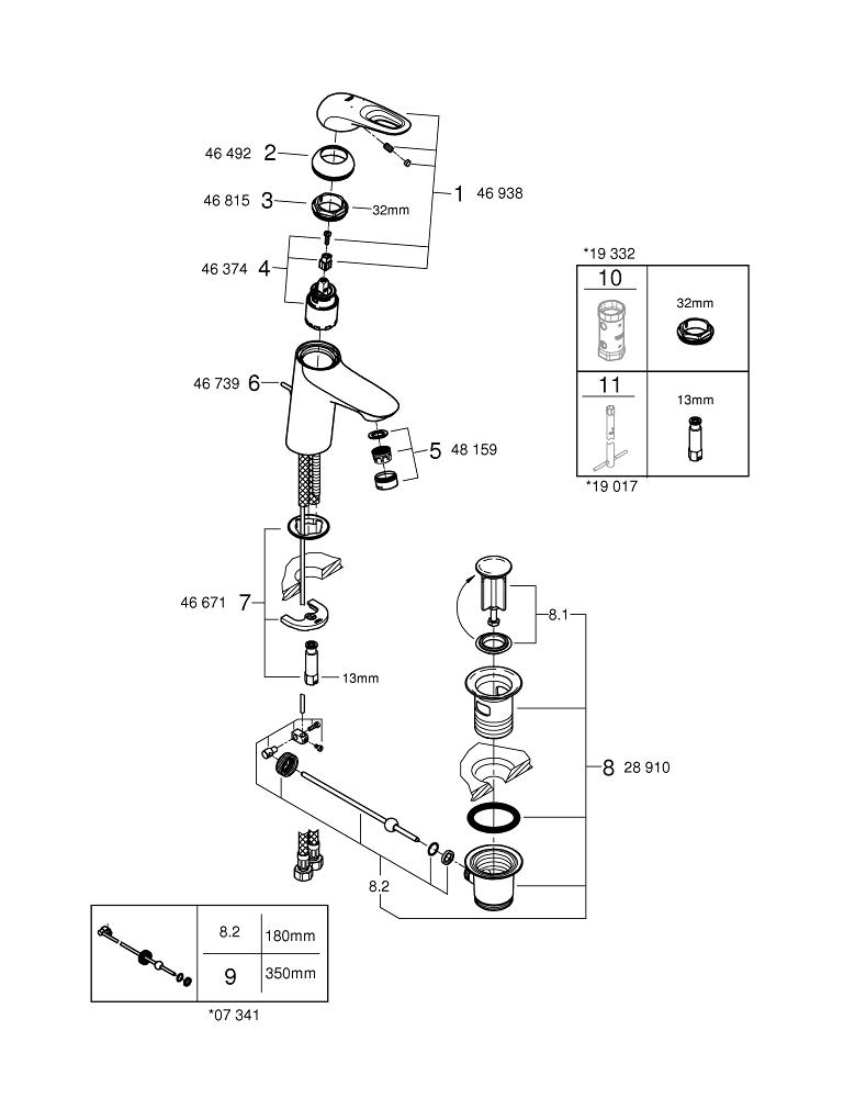 GROHE Eurostyle New waterbesparendes wastefelkraan M size met waste chroom