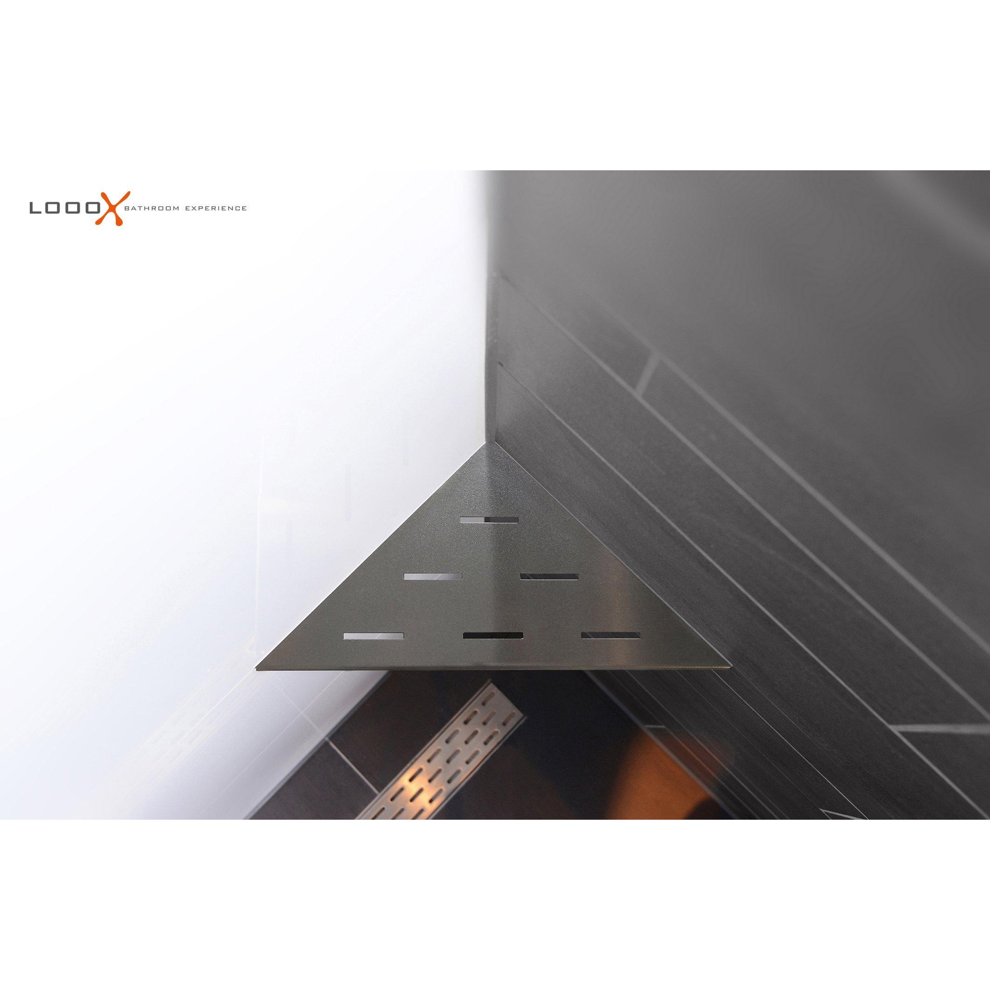 Met zijn eigentijdse en strakke ontwerp voegt de Looox hoekplanchet een vleugje moderniteit toe aan elke badkamer. De antraciete afwerking geeft een luxe uitstraling en past perfect bij verschillende badkamerstijlen. Het minimalistische design zorgt ervoor dat dit hoekplankje niet alleen functioneel is, maar ook een decoratief element dat de algehele uitstraling van de ruimte verbetert.