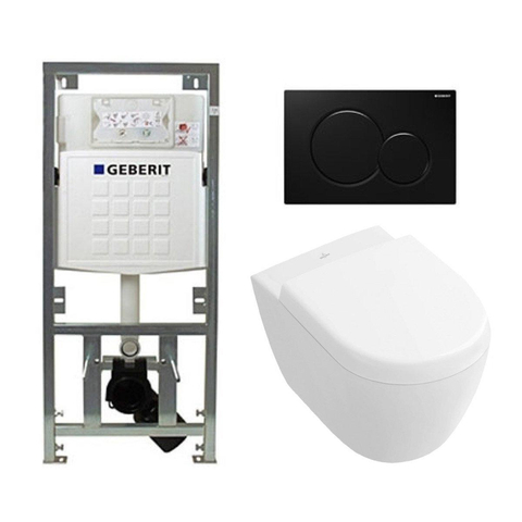 Villeroy Boch Subway 2.0 compact DirectFlush Toiletset - Geberit reservoir - bedieningsplaat zwart - softclose - quickrelease - wit