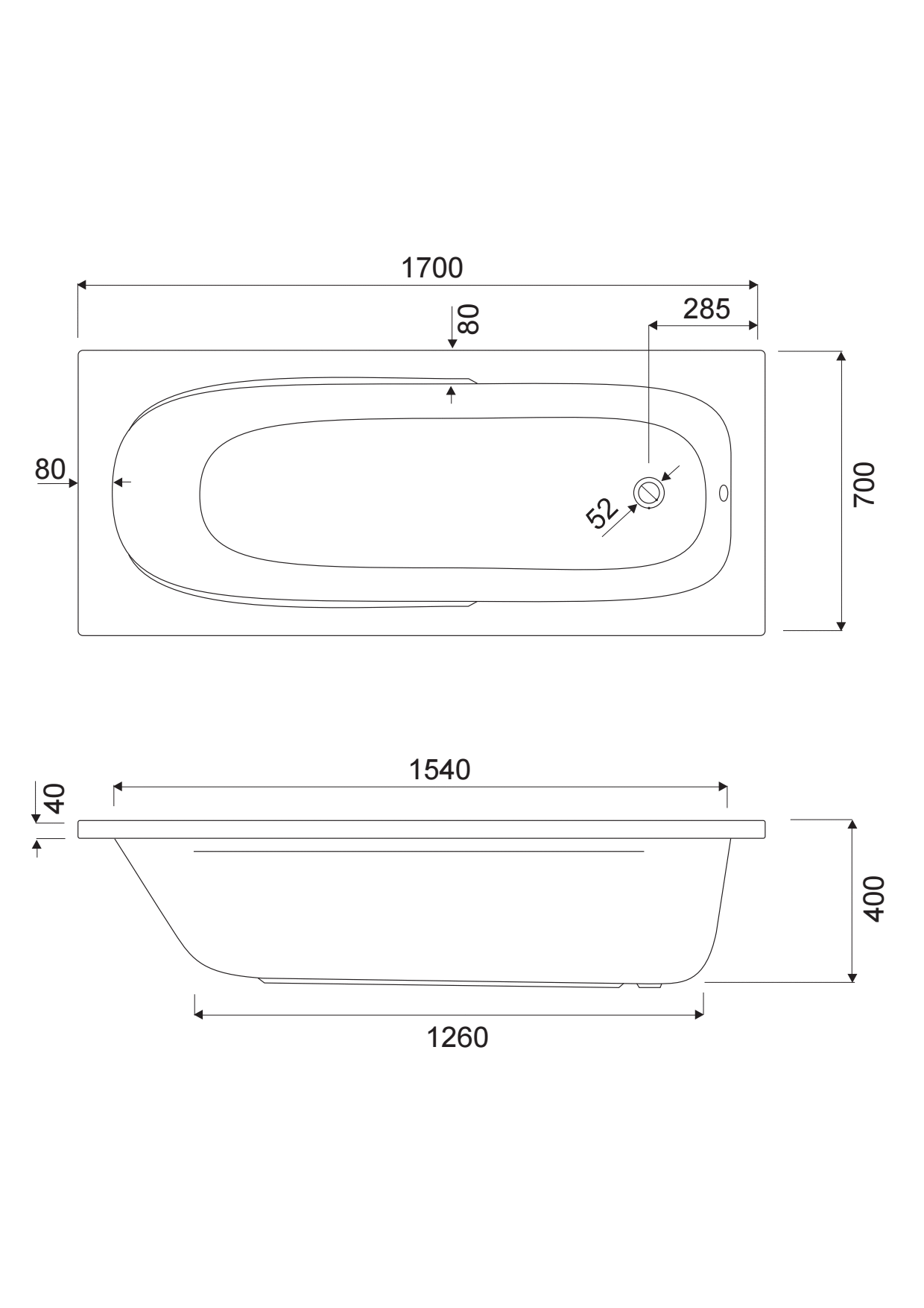Wisa Fontana Bad Rechthoek 170x70cm Wit