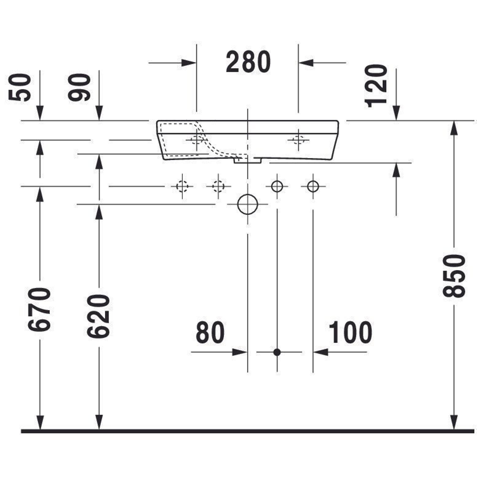 Duravit Durastyle fontein 50x22 cm. kraangat links wit