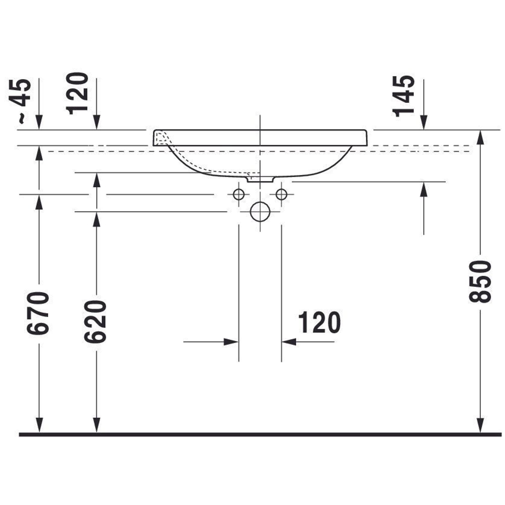 Duravit DuraStyle inbouwwastafel zonder overloop zonder kraangat 60x43cm wit