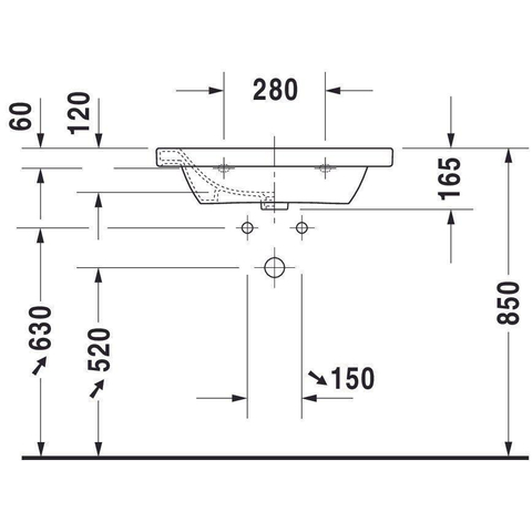 Duravit DuraStyle meubelwastafel m. overloop m. 1 kraangat 65x48cm wit