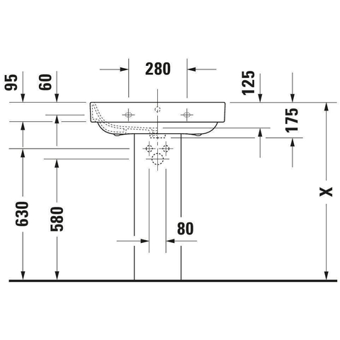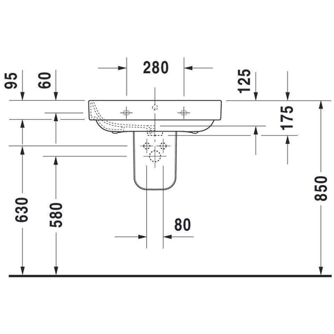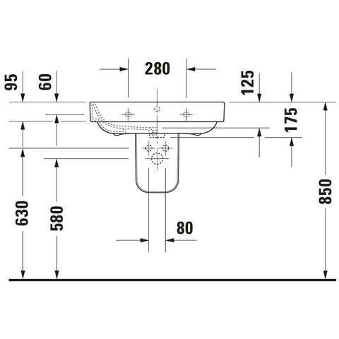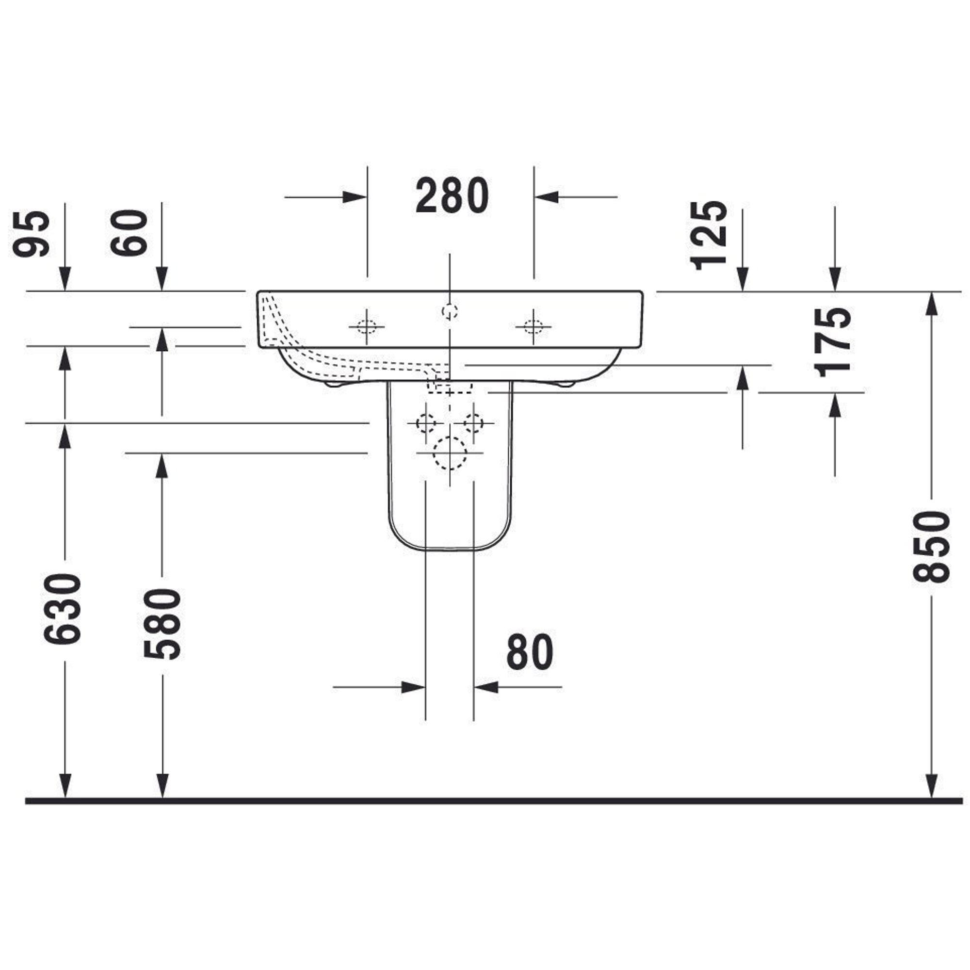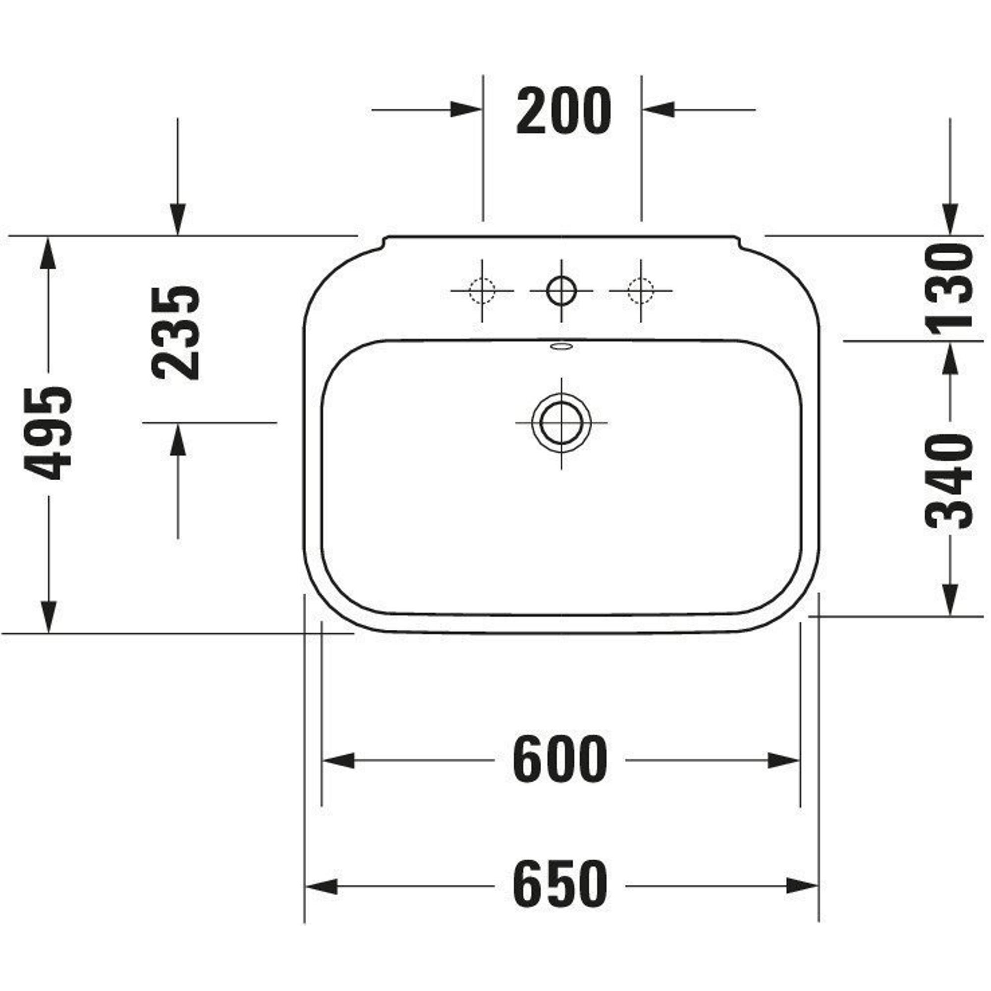 Duravit HappyD 2 wastafel m. overloop m. 1 kraangat 65x50cm wit