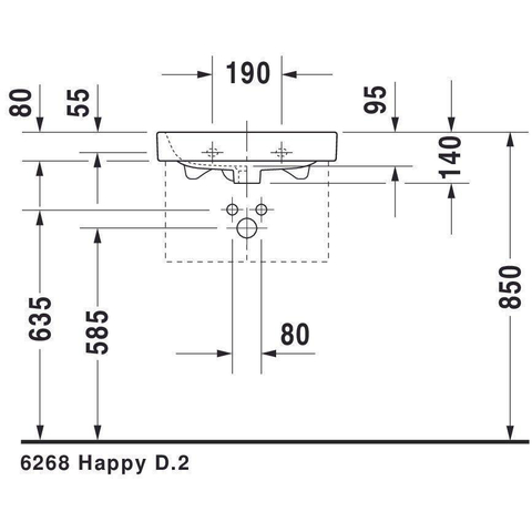 Duravit HappyD 2 meubelfontein met overloop met kraangat 50x36cm wit