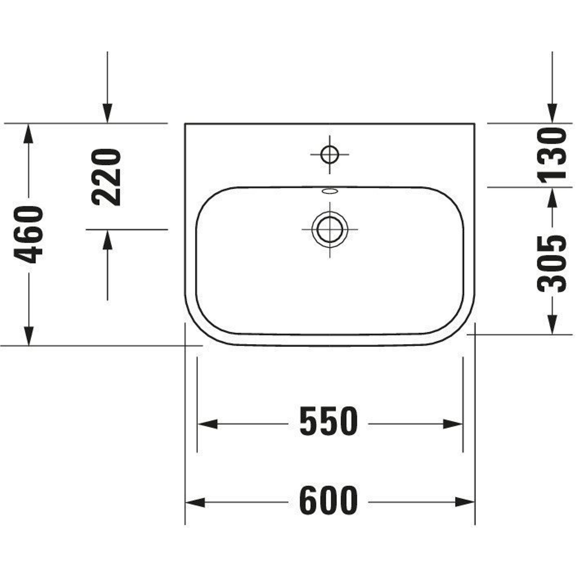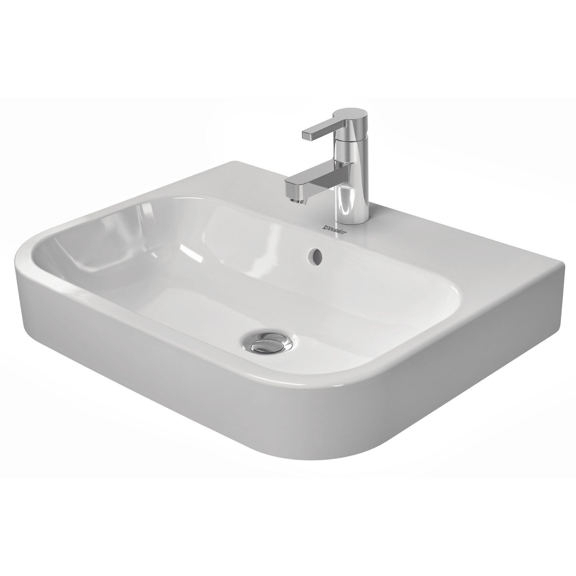 Duravit HappyD 2 opbouwwastafel geslepen met overloop met kraangat 60x46cm met wondergliss wit