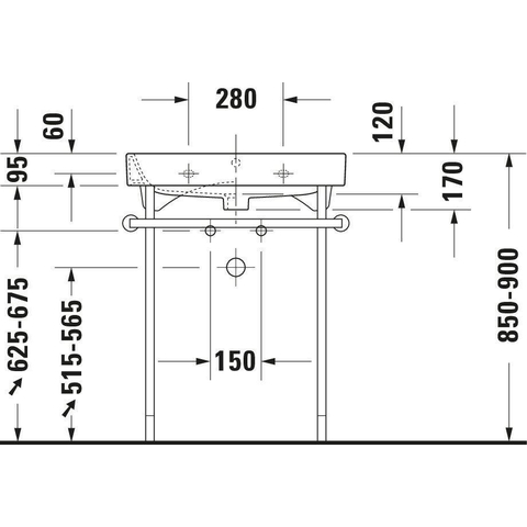 Duravit HappyD 2 onderstel verstelb. 5cm voor wastafel 231865 chroom