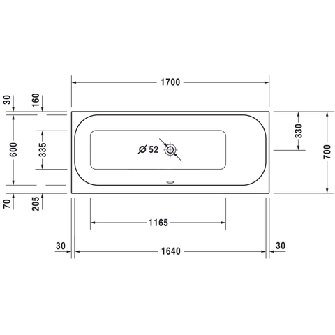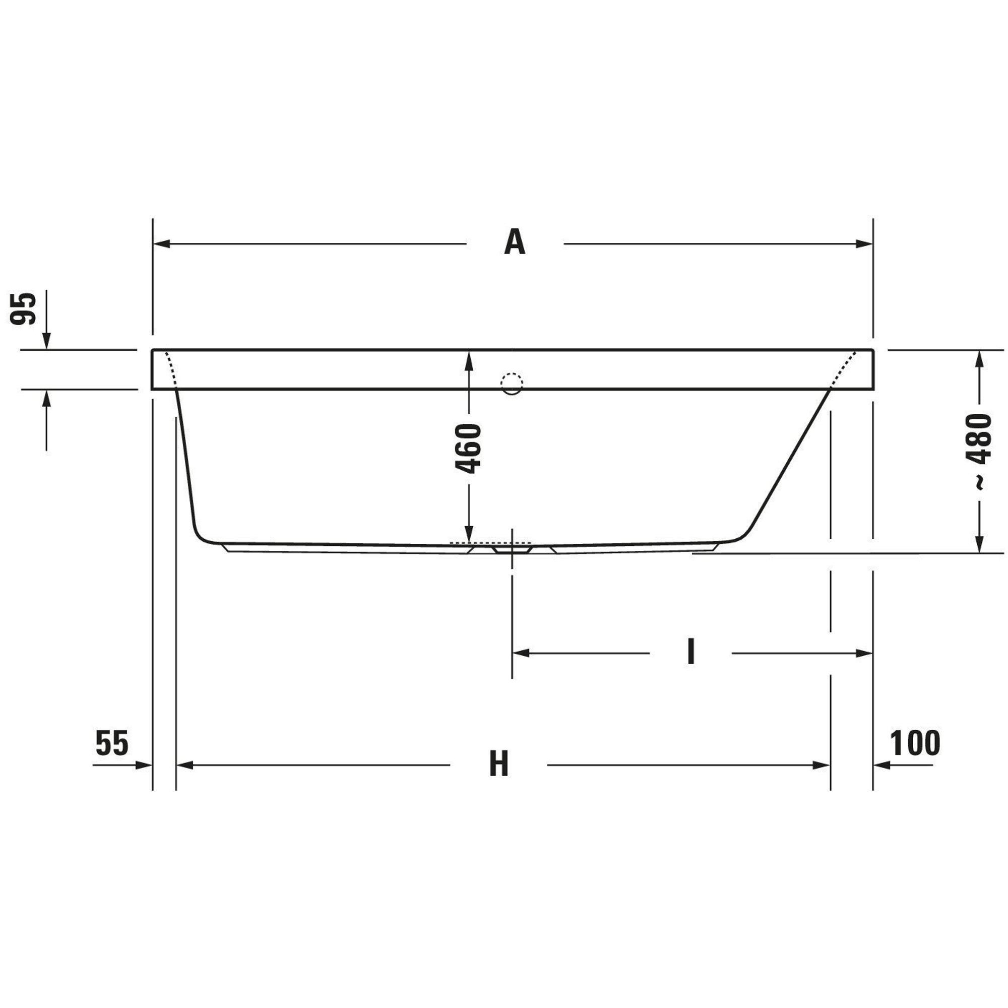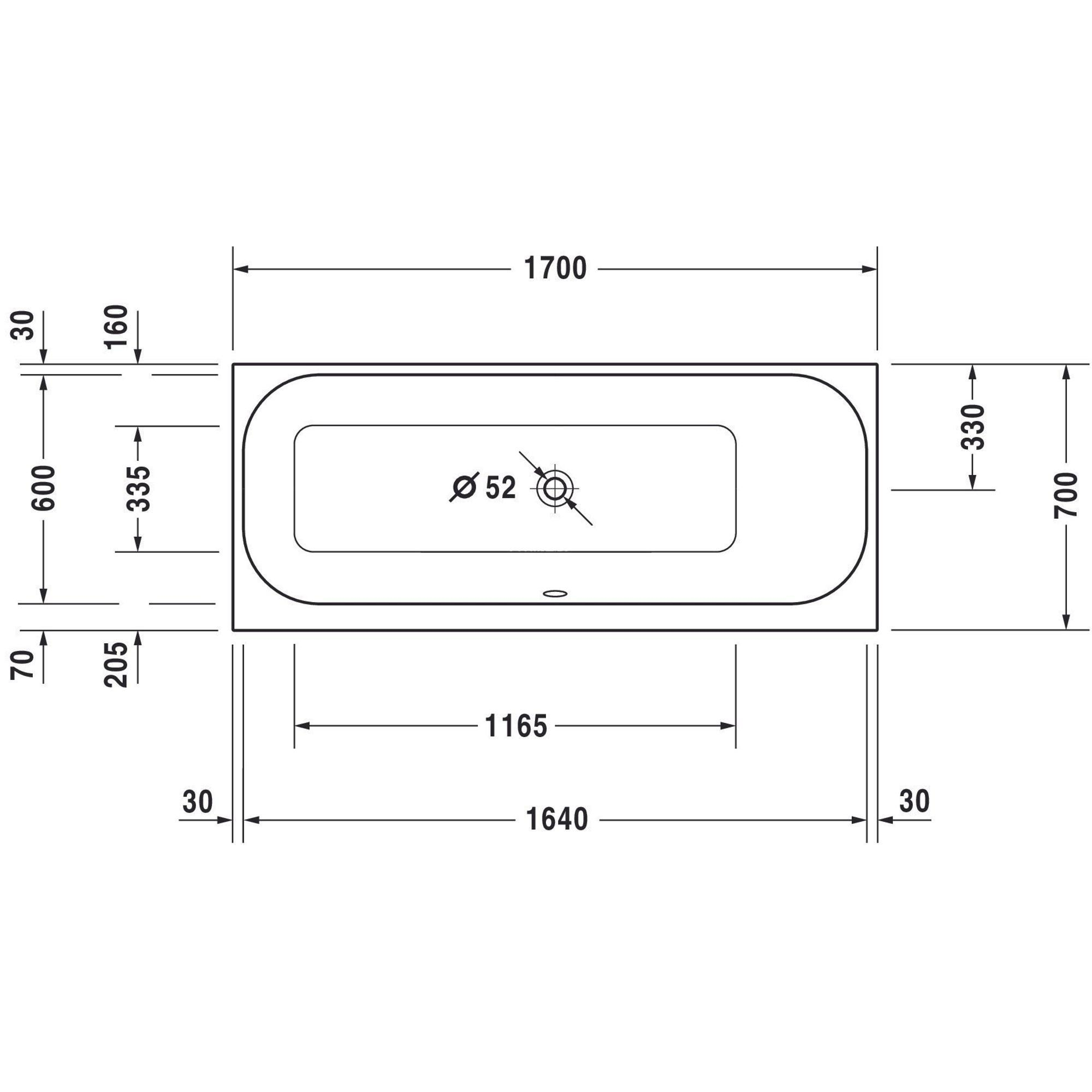 Duravit HappyD 2 kunststof inbouwbad acryl rechthoekig met rugsteun rechts 170x70x46cm zonder poten wit