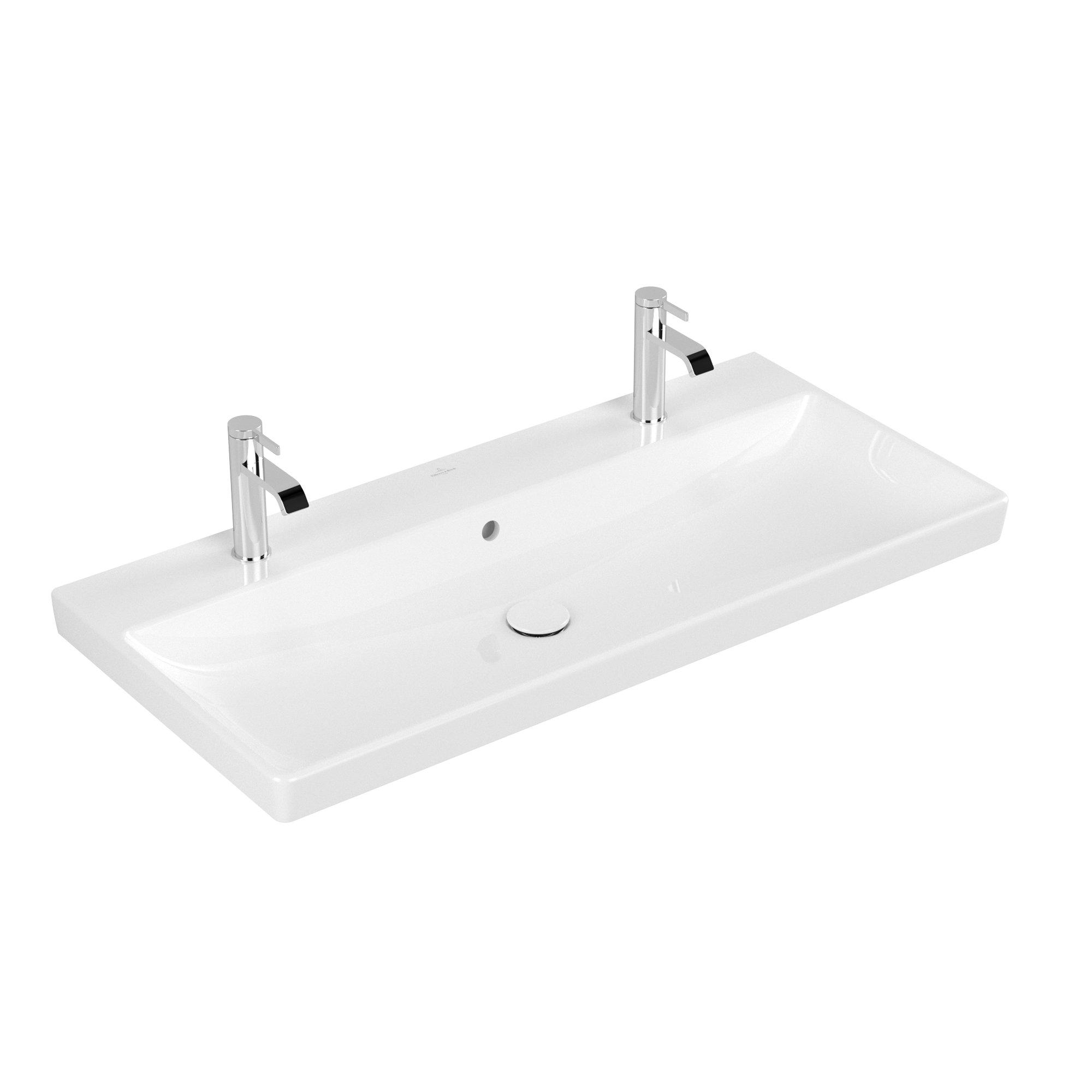 Villeroy & Boch Avento meubelwastafel 100x47cm 2 kraangaten met overloop ceramic+ wit